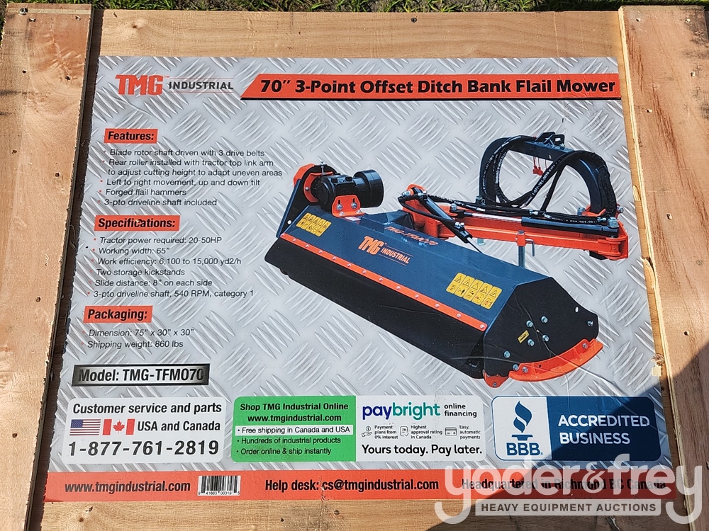 Unused TMG TFMO70 70" Flail Mower Ditch Bank 3-PTO to suit Skidsteer - 1******7